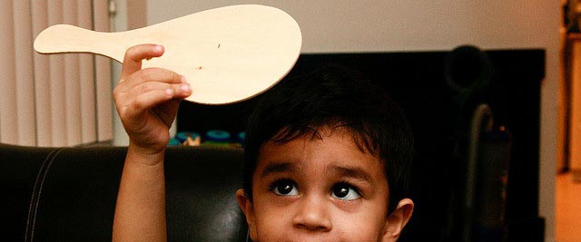 Hit the ball and point out that the ball returns to the paddle only to get a good swat.