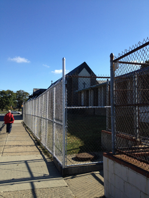 The sanctuary is long and narrow but they had an adequate sound system. They had artistic reliefs on the wall. On another day I might have taken photos. But we aren’t ourselves at the moment. The only photo I took was the photo of our first impression—a large and imposing fence around their educational wing.