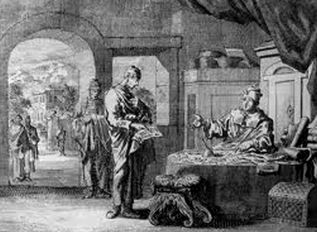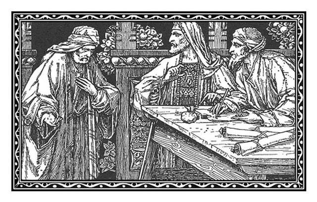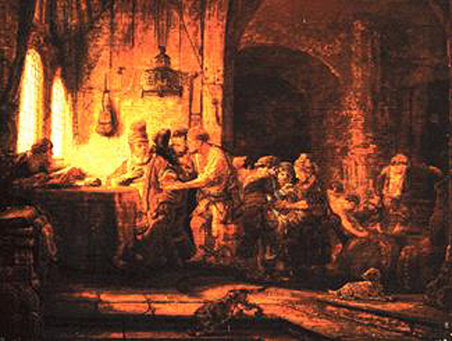 Next is an etching that also focuses on just the two key players. That guy in the middle is the snitch—the fellow who reported the shrewd manager. I wonder if he was a really good friend of the rich man or if he expected a reward!