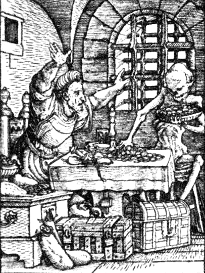 Death surprises the rich man and sweeps away the riches along with the man’s life.