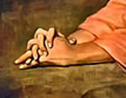 Just for fun let’s compare the hands of Christ in two of these paintings. Below is a detail of the most famous painting of Jesus praying.