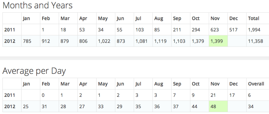 Our best month of 2011 was November with 623 new readers that month.